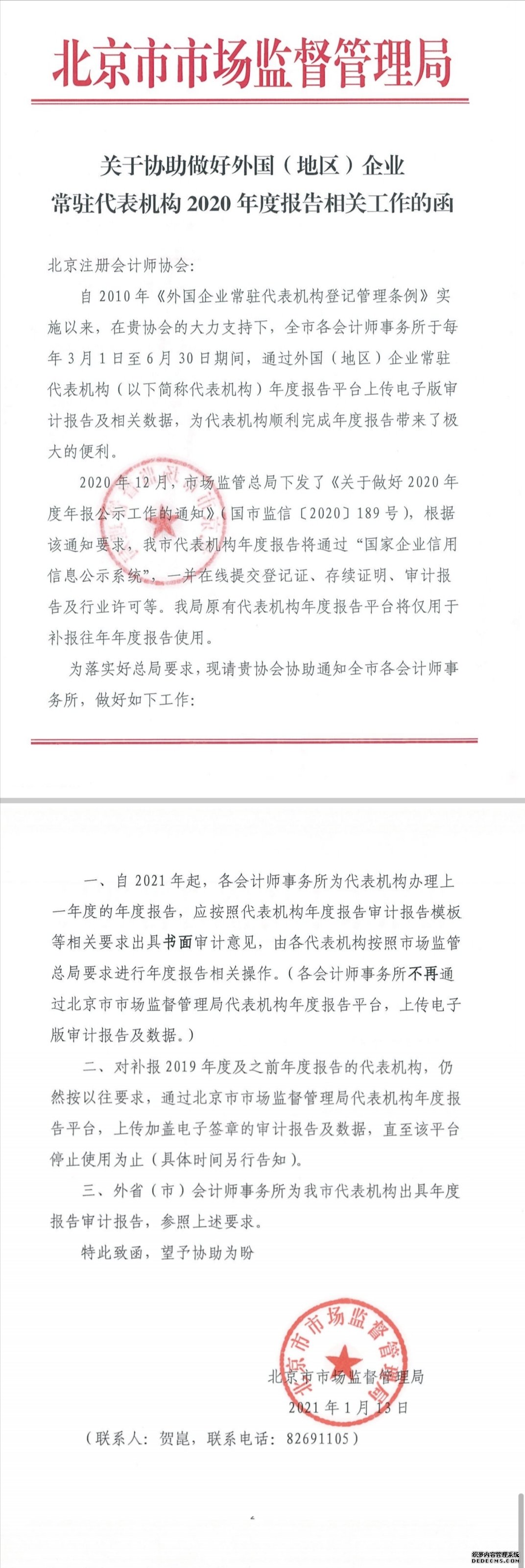 北京市市場監(jiān)督管理局關(guān)于協(xié)助做好代表機構(gòu)2020年度報告相關(guān)工作的函